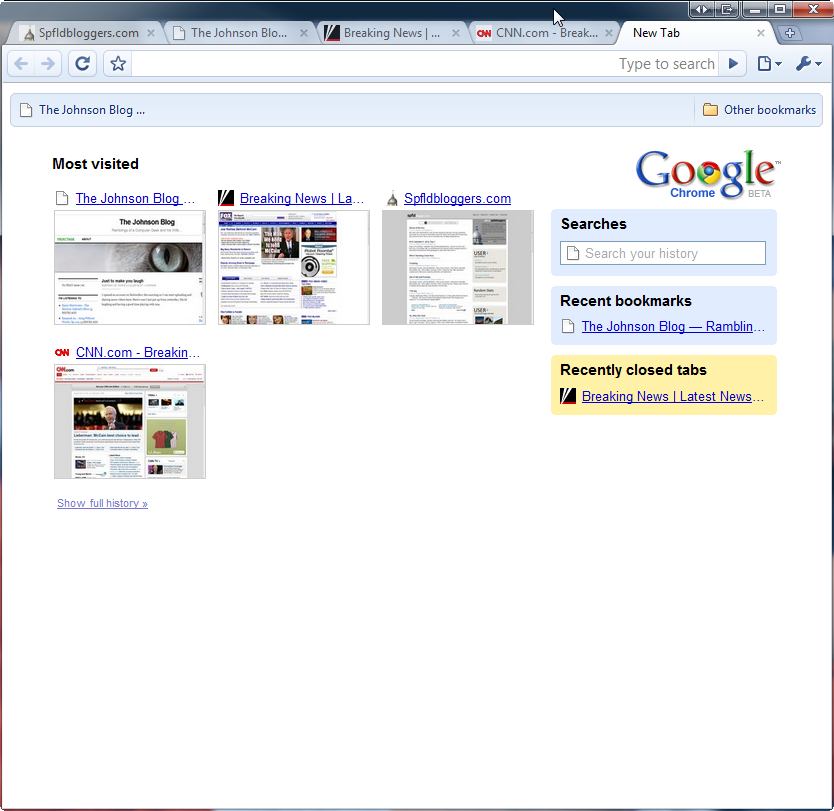 The visual history and “most visited” page you get when you open a new/blank tab is a nice idea, I like it: