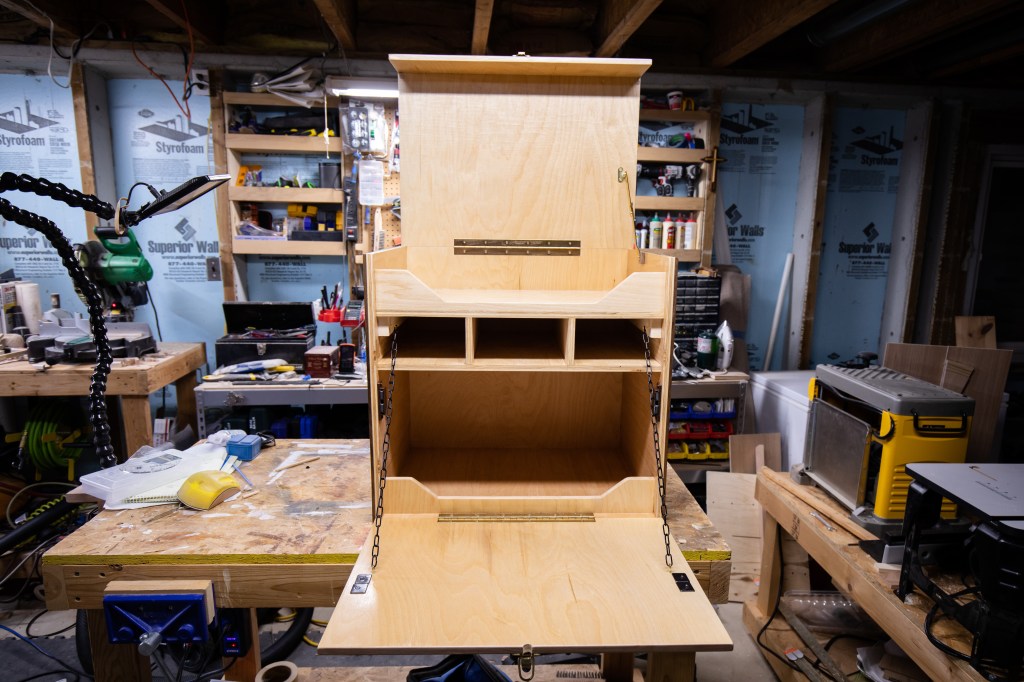 Funny story, I actually had to make this one twice. The first one I screwed up by making the top too shallow, so it has since been repurposed and tweaked to be a rock-tumbler-case for Claire’s rock tumbling hobby. I’ll post photos of that soon.