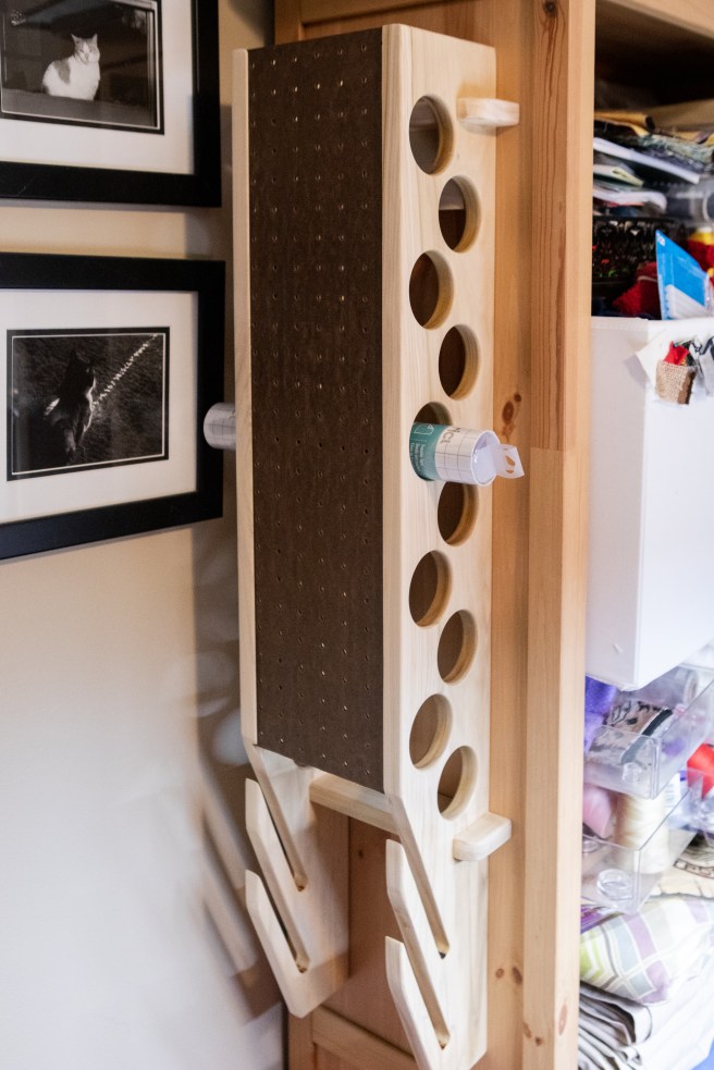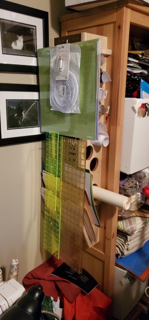 A few weeks ago I was looking for a small project to work on and Ana requested a small organizer for some of her Cricut supplies. After some time in Fusion 360, I had a plan for a small organizer to hang on the wall to accommodate 10 vinyl rolls, a few file folders, and pegboard for other bits.