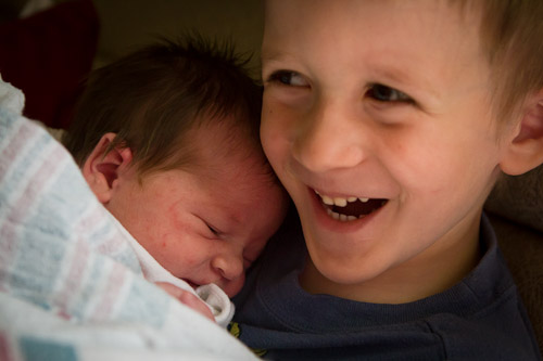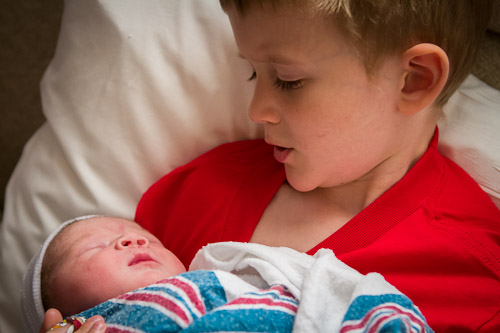 We were very curious how he was going to react when he was able to actually see and hold the baby. I think it is fair to say he has fallen in love with Claire already. He goes just minutes without holding her before begging to do so again.
