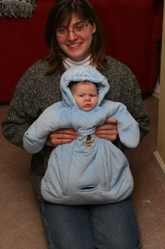 Today is Ana’s first day back to work, and at her new job nonetheless! Good luck Ana, you’ll do great! Accordingly, today is David’s first day at Gradma Johnson’s house. As you can see, he’s all ready to go.