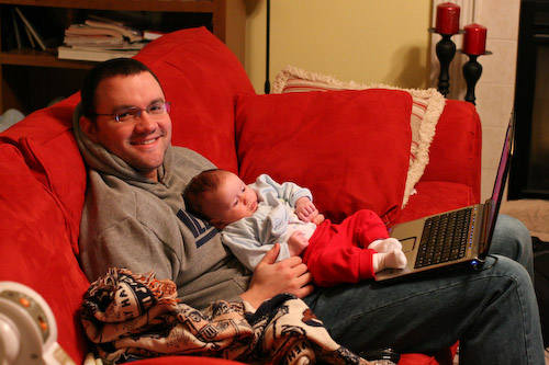 It has been pretty hectic this morning as Ana tries to get out the door. I’m trying to figure out when, where, and how to help her out in the most efficient manner – like dressing him (not bad, eh? *nudge*). It’s a little rough around the edges but I’m sure by the end of the week we’ll have some sort of routine down.