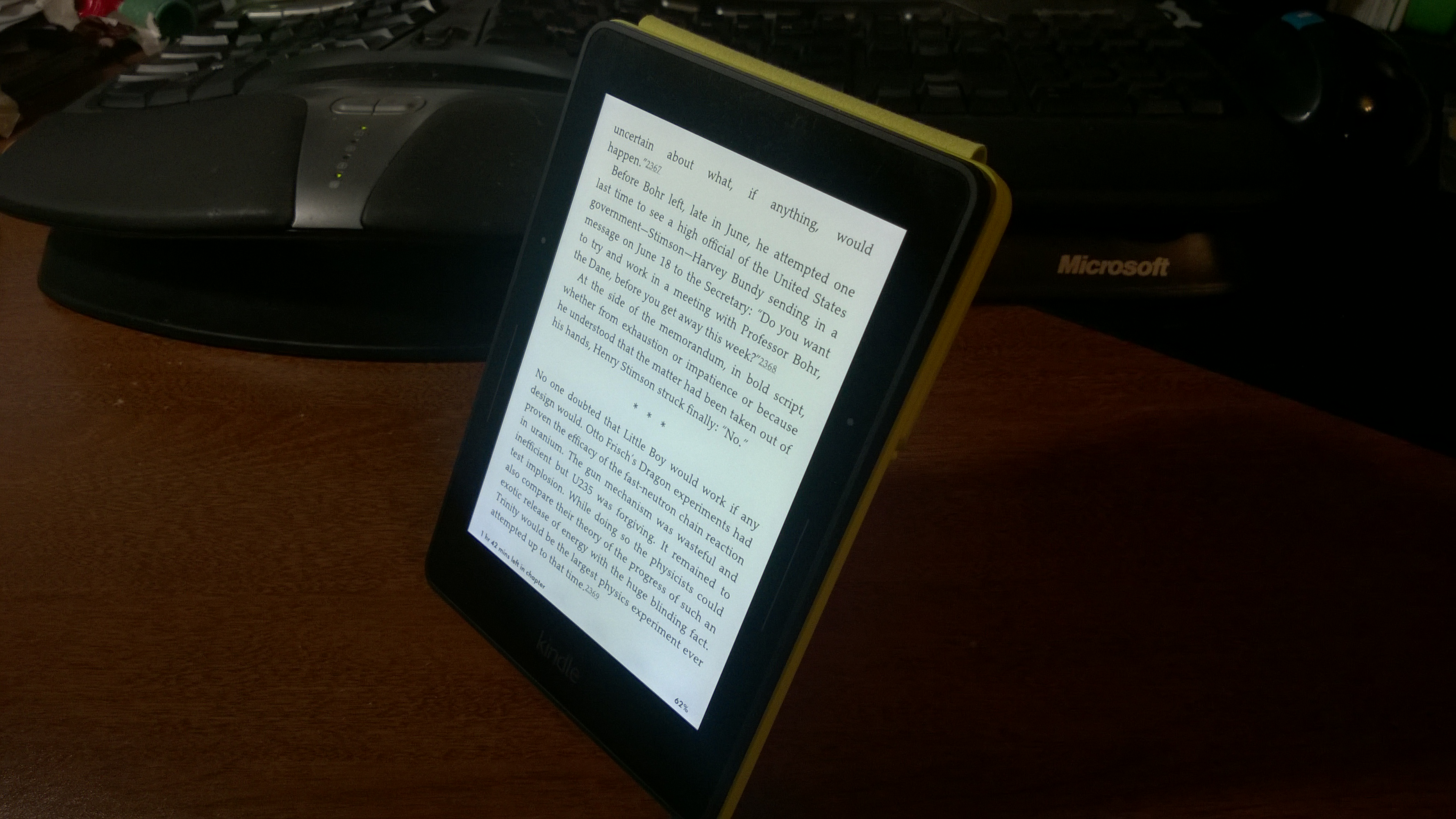 Until upgrading, I didn’t realize the faults of the Paperwhite’s screen.  It lit up, making night reading pleasant.  End of story.