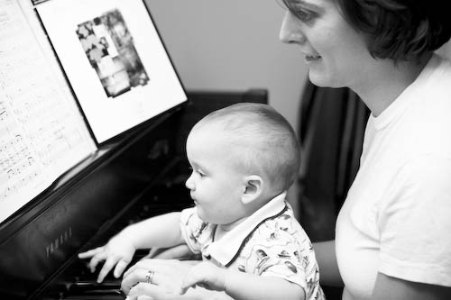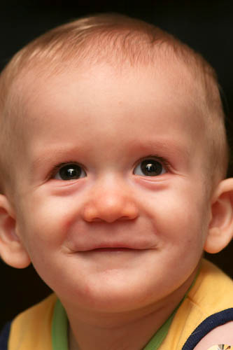David has been doing a pseudo-crawl; we’ve dubbed it the Army Man Scoot.  He’s getting pretty good at it, and can slide across our family room in no time.  Taking advantage of this, I joined him on the floor tonight and had him chasing me around the room.  I’d duck around a corner, let out a growl and he’d “growl” back at me before screaming in laughter when I’d reappear and come after him.  It was a blast…